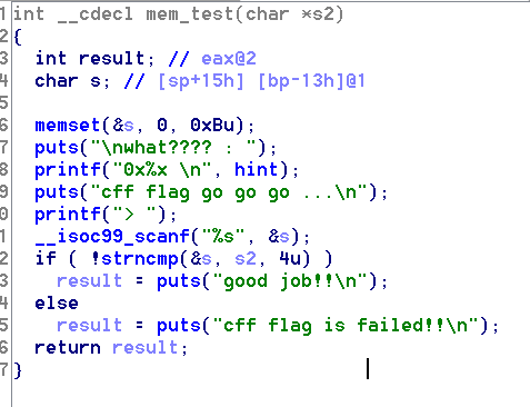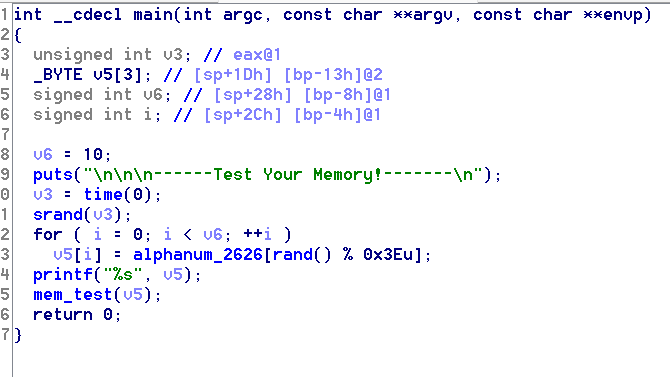 mem_test函数就是让我们输入,然后比较我们的输入与之前的字符串是否相同,但是没啥用,并不影响程序进行
