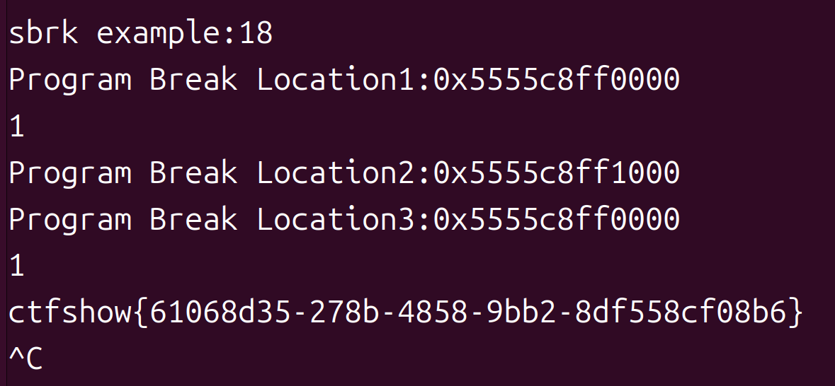 可以看出brk()和sbrk()的功能了,sbrk()通过相对偏移量调整堆顶指针,并返回调整前的堆顶地址。