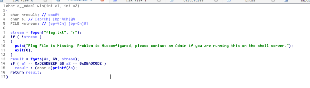 if ( a1 == 0xDEADBEEF && a2 == 0xDEADC0DE )